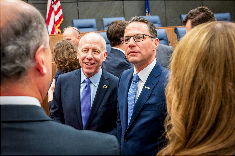 Leadership panel imagery reinforces authority and collaboration.